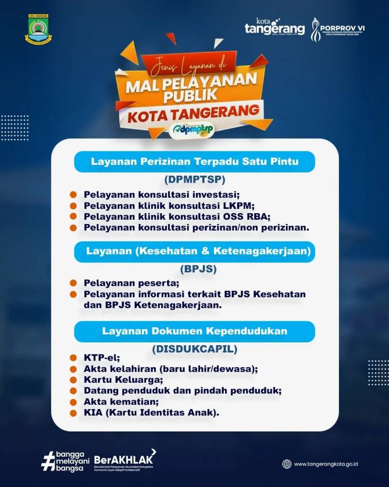 Yuk akses segala pelayanan di Kota Tangerang, mulai dari urus KTP, perpanjang SIM, hingga urusan harta gono-gini dan berbagai layanan lainnya di Mal Pelayanan Publik Kota Tangerang!