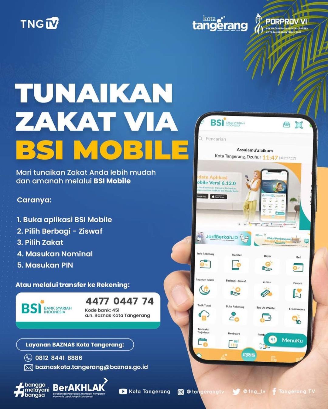 Mari #sobattangerang tunaikan Zakat anda melalui BSI Mobile, lebih mudah dan amanah!