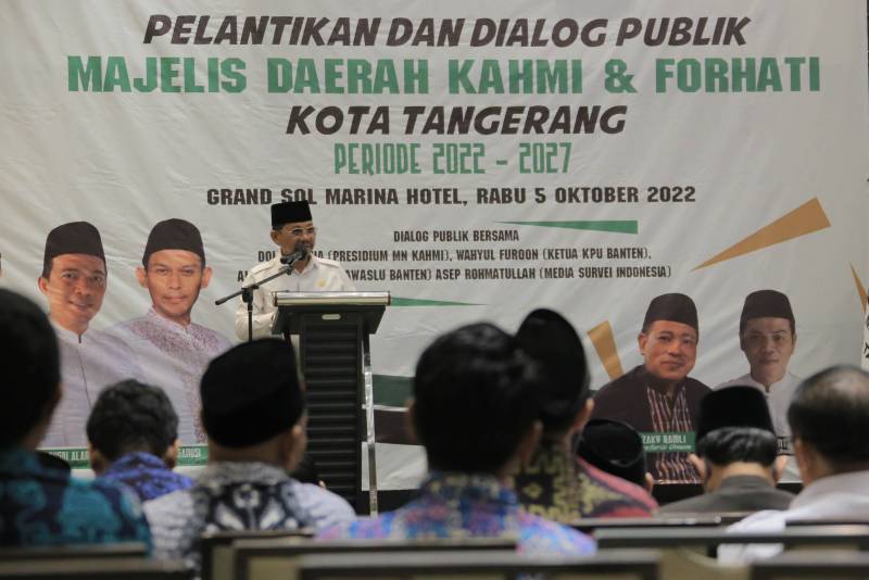Wakil Wali Kota Tangerang H. Sachrudin hadir dalam Pelantikan dan Dialog Publik Majelis Daerah KAHMI & FORHATI Kota Tangerang Periode 2022 - 2027 yang digelar di Ballroom Sol Marina Hotel Jatiuwung, Kota Tangerang, Rabu (5/10/22).