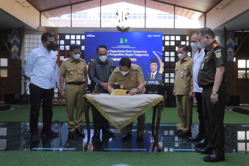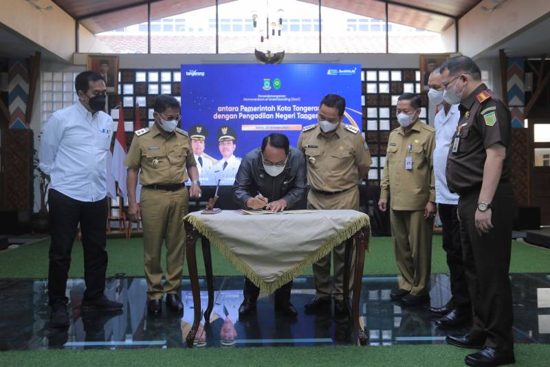 Sebagai informasi, selain penandatangan kerja sama dengan PT. Angkasa Pura II, Pemerintah Kota Tangerang juga melakukan penandatanganan MoU dengan Pengadilan Negeri Kota Tangerang tentang Penyediaan Layanan Bagi Masyarakat Pencari Keadilan. Dalam sambutannya, Ketua Pengadilan Negeri Tangerang, Barita Sinaga menerangkan ruang lingkup nota kesepahaman tersebut meliputi penyediaan layanan perubahan status kependudukan dan juga layanan kesehatan.