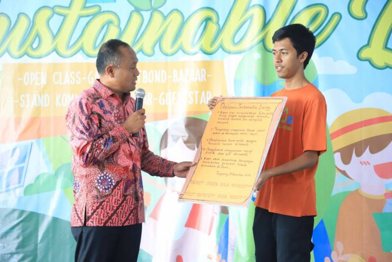 "Acara inti ialah Deklarasi Sustainable Living atau Hidup Ramah Lingkungan. Deklarasi dipimpin Camat Pinang, Syarifudin dan diikuti seluruh warga sekolah. Mulai dari murid, orangtua siswa hingga tamu undangan. Diharapkan bisa menjadi komitmen yang dimulai dari keluarga untuk lingkungan yang lebih luas," ungkap Tik.
