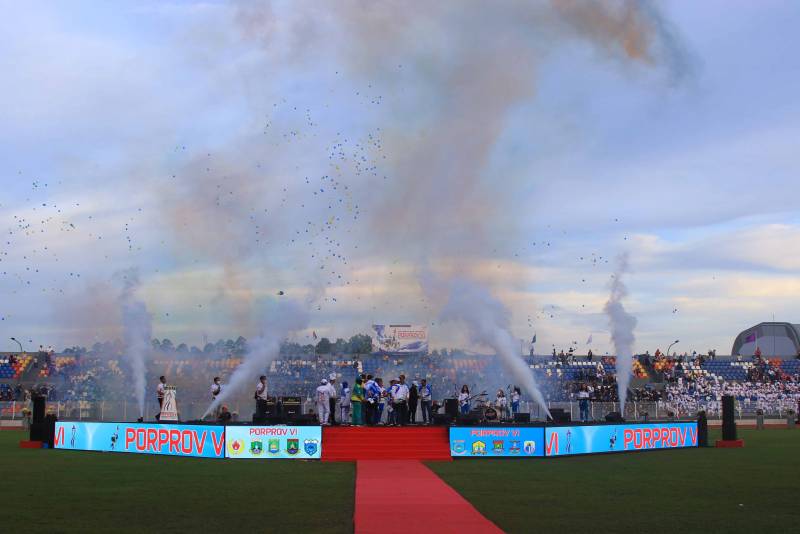 Pembukaan Porprov VI Banten berlangsung dengan lancar dan amat meriah, di mana acara diawali tampilan dari grup band NTRL mengiringi defile kontingen dari delapan kota kabupaten se-Provinsi Banten.