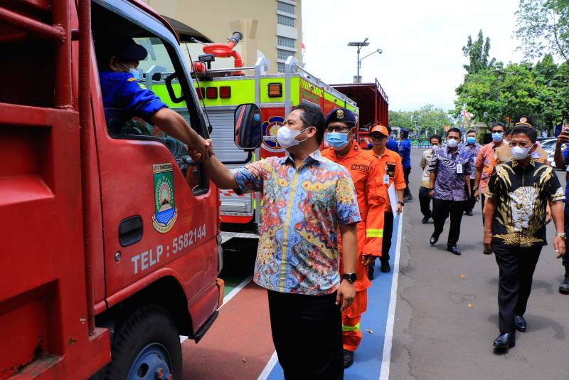 Wali Kota Tangerang H. Arief R. Wismansyah didampingi wakilnya H. Sachrudin melepas langsung keberangkatan 20 personil tim BPBD Kota Tangerang yang dimulai dari Pusat Pemerintahan Kota Tangerang, Kamis (24/11/22).