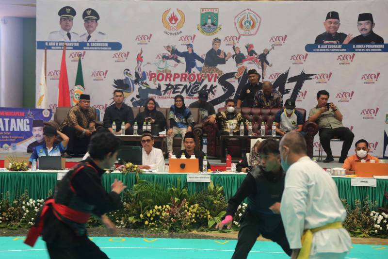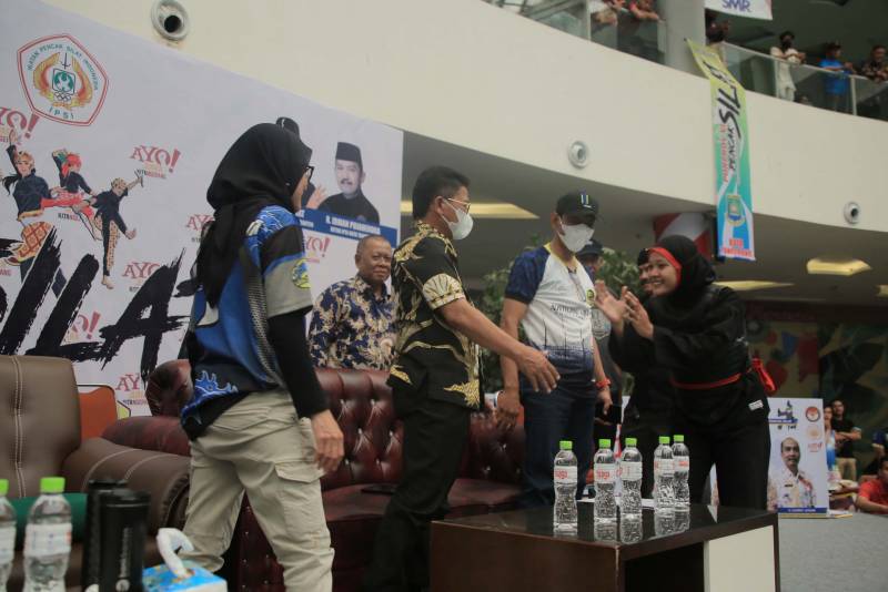 Di tempat berbeda, Wakil Wali Kota Tangerang H. Sachrudin bersama dengan Bupati Lebak Iti Octavia Jayabaya terlihat seru menyaksikan pertandingan Cabang Olahraga Pencak Silat yang digelar di Mall Balekota Tangerang.