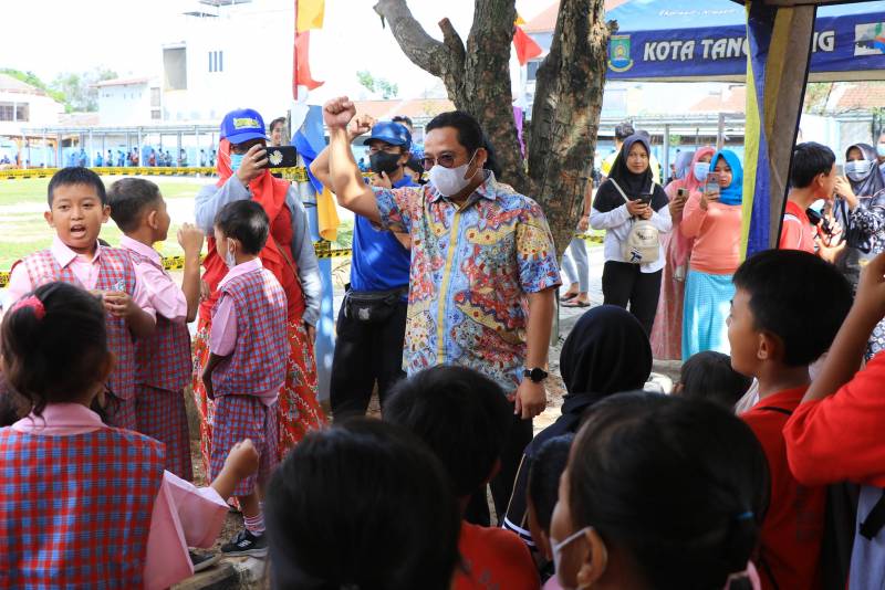 Selain itu, Arief juga tak lupa menyapa dan ikut meneriakkan yel-yel bersama para suporter yang merupakan siswa-siswi SD-SMP Kota Tangerang yang diterjunkan langsung khusus untuk mendukung dan memberi semangat para atlet yang bertanding di pesta olahraga terbesar di Provinsi Banten kali ini.