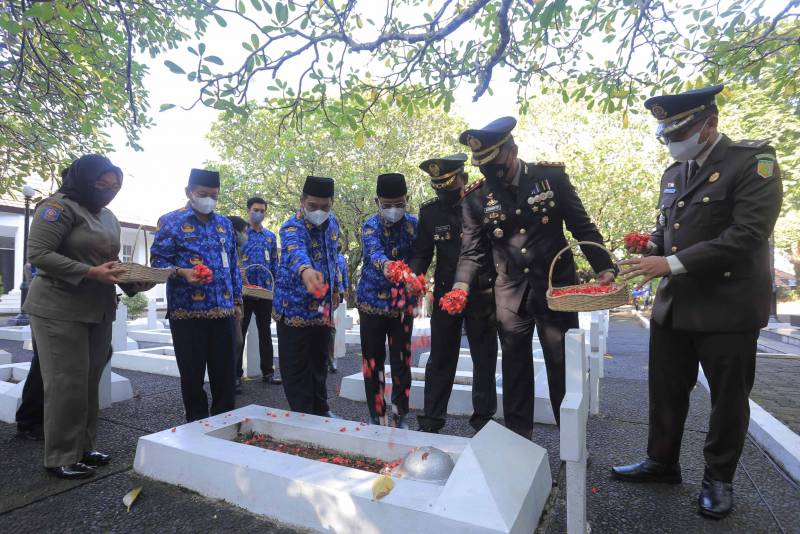 "Ayo pak kita sama - sama tabur bunga di makam pahlawan nasional Daan Mogot," ajak Wali Kota kepada unsur Forkopimda yang hadir di Taman Makam Pahlawan Taruna, Kota Tangerang, Selasa (29/11).