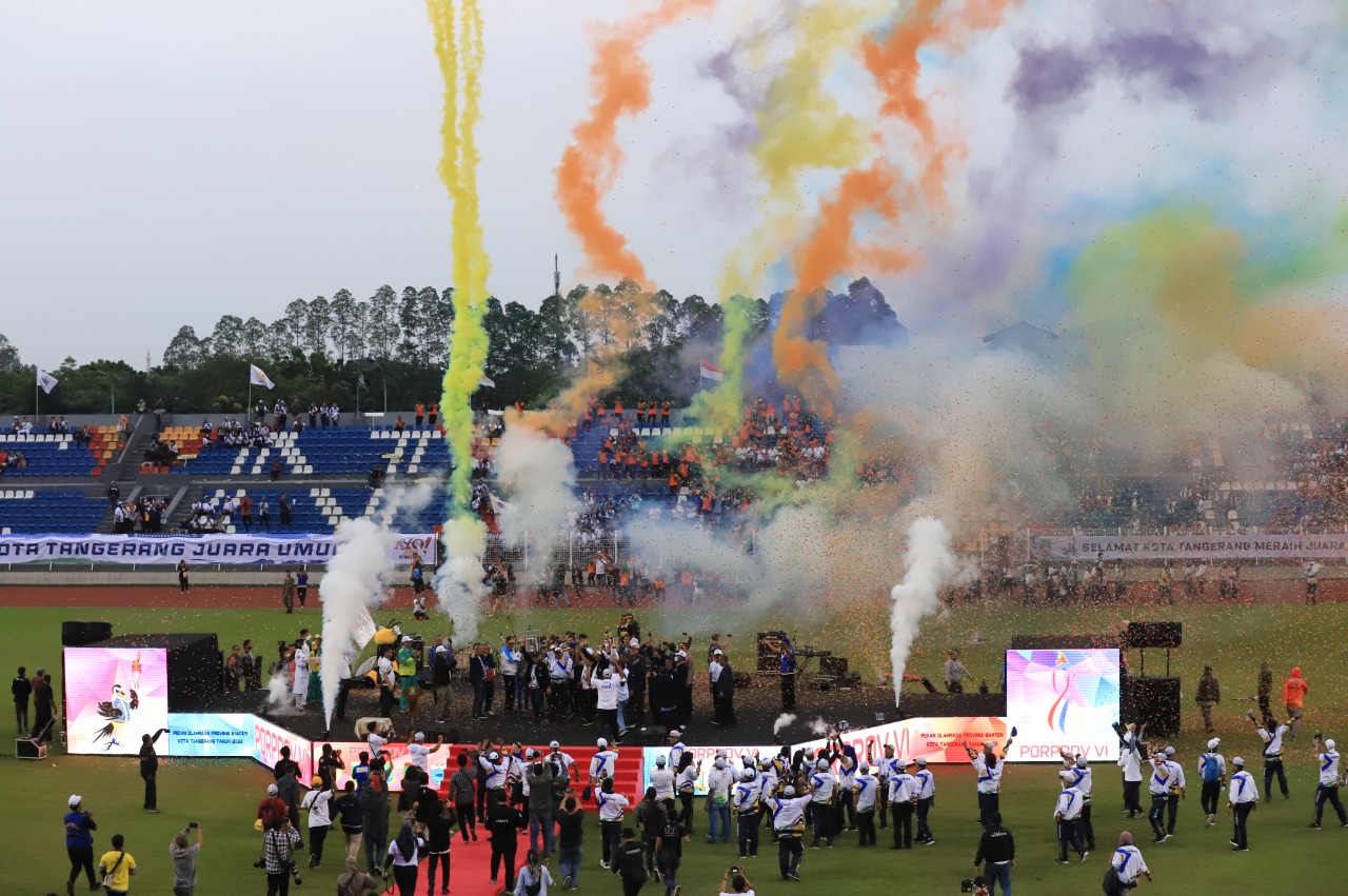 Pekan Olahraga Provinsi (Porprov) VI Banten yang berlangsung di Kota Tangerang, sebagai tuan rumah resmi berakhir. Penutupan yang digelar di Stadion Benteng Reborn pun berlangsung meriah, dengan Kota Tangerang yang sukses dinobatkan sebagai Juara Umum Porprov VI Banten, Selasa (29/11/22).