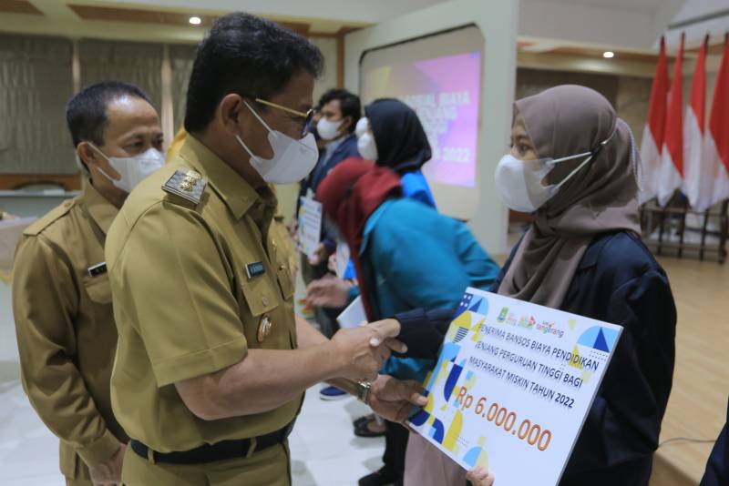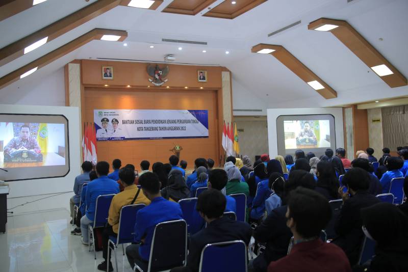 Dalam rangka mewujudkan pemerataan pendidikan khususnya pada jenjang perguruan tinggi sekaligus meringankan beban biaya bagi para mahasiswa Kota Tangerang, Pemerintah Kota (Pemkot) Tangerang melalui Dinas Sosial (Dinsos) kembali memberikan Bantuan Sosial Biaya Pendidikan Jenjang Perguruan Tinggi Kota Tangerang Tahun Anggaran 2022 bertempat di Aula Al-Amanah Gedung Pusat Pemerintahan (Puspem) Kota Tangerang, Senin (05/11/2022).