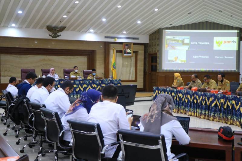 "Pemkot Tangerang dinilai telah berhasil dalam penerapan penyusunan SKJ serta penciptaan aplikasi yang terintegrasi, sehingga harapannya terdapat manfaat dari hasil benchmarking hari ini untuk diimplementasikan di KemenPAN-RB RI." tukas Sri.