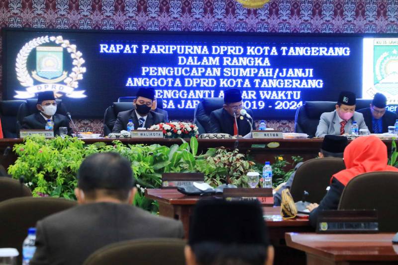 Wali Kota Tangerang H. Arief R. Wismansyah menghadiri Rapat Paripurna DPRD Kota Tangerang tentang Pengambilan Sumpah/Janji Pergantian Antar Waktu (PAW) Anggota DPRD Kota Tangerang Sisa Masa Jabatan 2019-2024 yang dilaksanakan di Ruang Rapat Paripurna DPRD Kota Tangerang, Rabu (07/12).