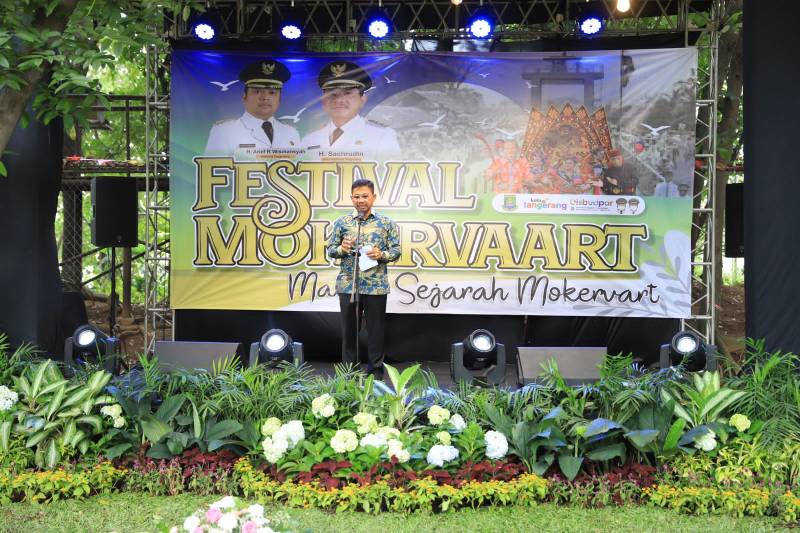 Dalam rangka mengenalkan sejarah pintu air Mokevaart, Pemerintah Kota Tangerang melalui Dinas Budaya dan Pariwisata (Disbudpar) menggelar Festival Mokevaart di Hutan Kota, Jalan Daan Mogot, Minggu (11/12/2022).