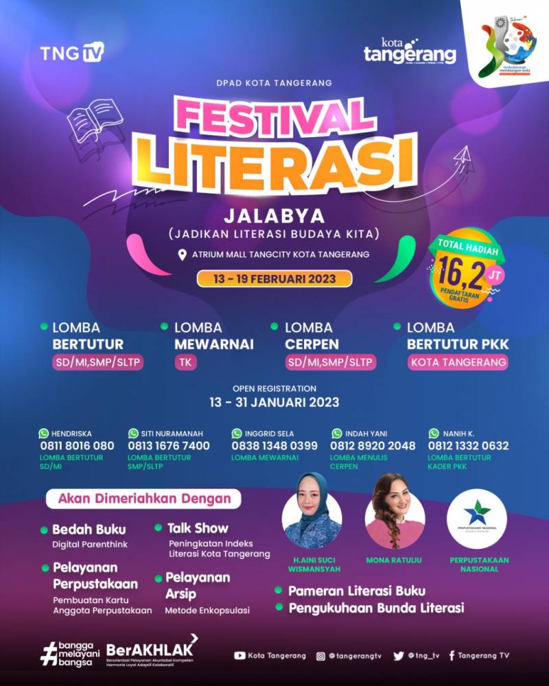 Tingkatkan minat baca pada generasi muda, Pemerintah Kota Tangerang melalui Dinas Perpustakaan dan Arsip Daerah (DPAD) menggelar Festival Literasi yang terbuka untuk umum, pada (13/2/2023) hingga (19/2/2023) di Atrium Mall Tangcity, Kota Tangerang.