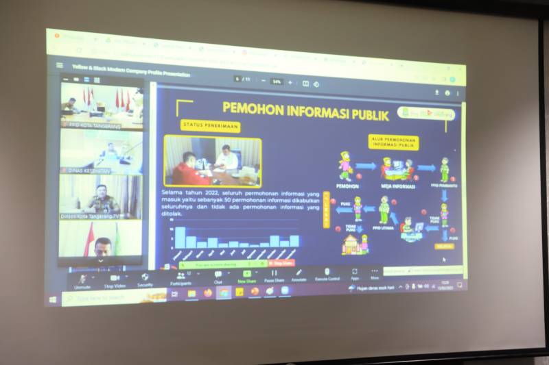 Kegiatan tersebut kini masuki tahap akhir penilaian yakni pemaparan oleh PPID Pembantu yang masuk dalam 5 (lima) besar. Selain paparan, PPID Pembantu juga dituntut dapat menjawab seluruh pertanyaan yang diajukan oleh panelis dari Komisi Informasi Pusat, Aditya Nuriya dan Komisi Informasi Provinsi Banten, Hilman serta tim pertimbangan pada Pemkot Tangerang yang berlangsung secara hybrid di Tangerang Live Room, Senin (13/2/2023).