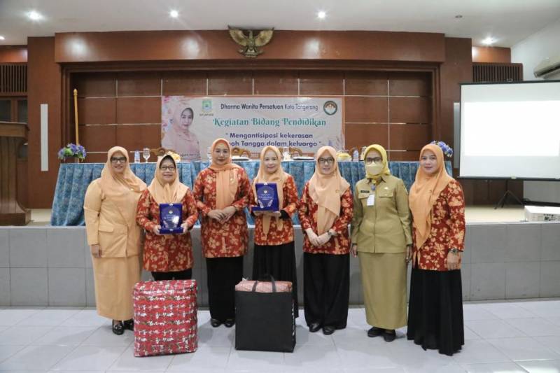 Dharma Wanita Persatuan (DWP) Kota Tangerang menggelar kegiatan bidang pendidikan membahas mengenai antisipasi kekerasan rumah tangga dalam keluarga, secara hybrid di Gedung Nyimas Melati, Selasa (14/2/2023).