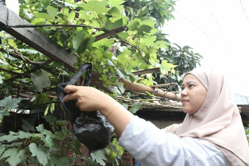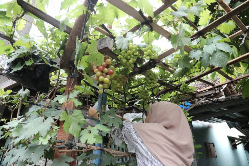 “Mereka melihat budidaya anggur saya berhasil, mereka tertarik, banyak bertanya dan ingin mencoba ya saya bantu. Mulai dari bibitnya, proses menanamnya hingga perawatannya saya dampingi, dan beberapa dari mereka juga sudah ada yang berhasil panen, sama-sama bermodal lahan teras rumah saja,” jelas Mila.