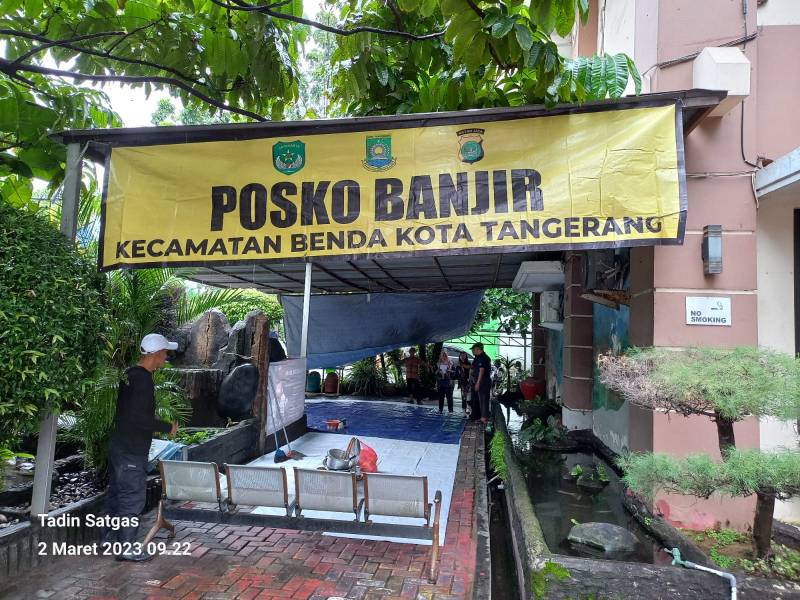Hujan dengan intensitas ringan hingga sedang, dalam waktu yang cukup lama terjadi disejumlah wilayah di Kota Tangerang. Akibatnya, sejumlah wilayah di Kecamatan Benda terjadi genangan banjir dengan ketinggian mulai 20cm dan tertinggi 60cm. Cepat tanggap menangani genangan yang terjadi, Pemerintah Kota Tangerang melalui Kecamatan Benda langsung mendirikan Posko Banjir beserta Dapur Umum, Kamis (2/3/23).