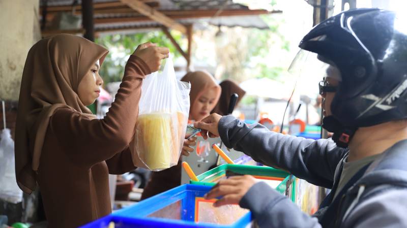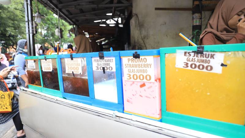 “Kita sudah berdiri sejak empat tahun lalu. Ada berbagai macam jus seperti mangga, buah naga, sirsak, alpukat, dan es buah. Selain itu, ada juga berbagai macam teh. Harganya satu cup mulai dari 3000 rupiah hingga 6000 rupiah tergantung rasa dan ukuran,” jelas Tri Wulan, Pelaku Usaha Es Buah Bang Udin.