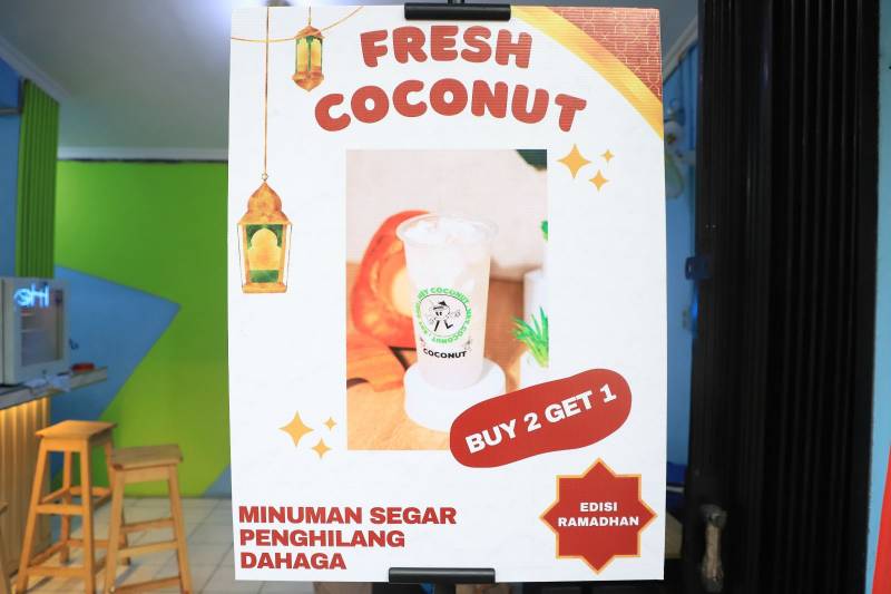 Pada bulan suci Ramadan, kelapa muda biasanya menjadi minuman pilihan untuk disajikan saat berbuka puasa. Selain itu, penyajiannya pun bisa menambahkan es atau diminum langsung dari kelapanya. Namun ada yang berbeda dari minuman yang dijual di Hey Coconut.