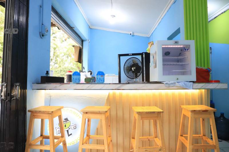 “Jadi kelapa muda tak hanya diminum, tapi yang kita sajikan ini dapat menggugah selera dengan aneka varian rasa smoothies. Apalagi harga yang dibandrol pun relatif terjangkau, kisaran Rp. 17 ribu hingga Rp. 22 ribu. Jika ingin memakai topping, cukup menambahkan biaya tiga ribu rupiah saja,” tutur Arrad.