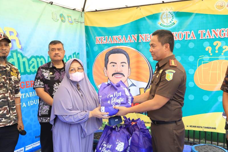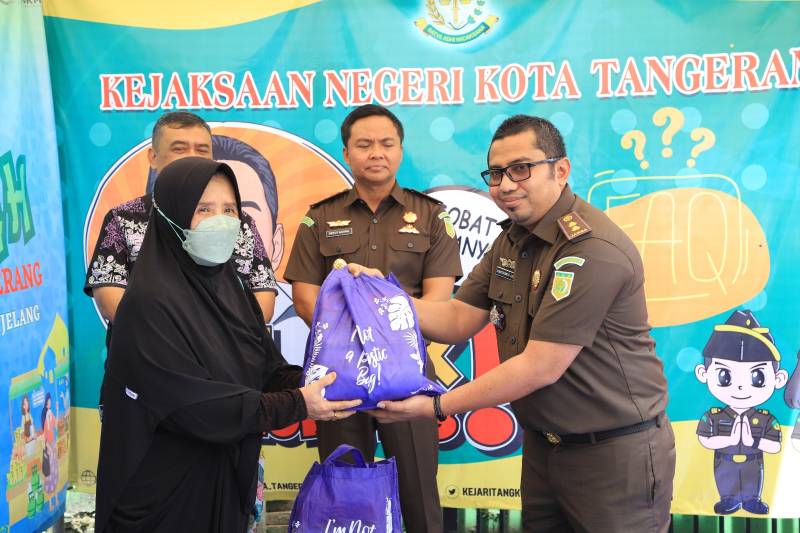 Bulan Ramadan menjadi ajang kesempatan berkolaborasi memberikan kebaikan. Memasuki paruh kedua bulan Ramadan, Dinas Perindindustrian, Perdagangan, Koperasi, dan UMKM (Disperindagkop UMKM) bersama Kejaksaan Negeri (Kejari) Kota Tangerang, menggelar Bazar Ramadan di halaman Masjid Baitul Muttaqien, Karawaci Baru, Kota Tangerang, Kamis, (6/4/23).