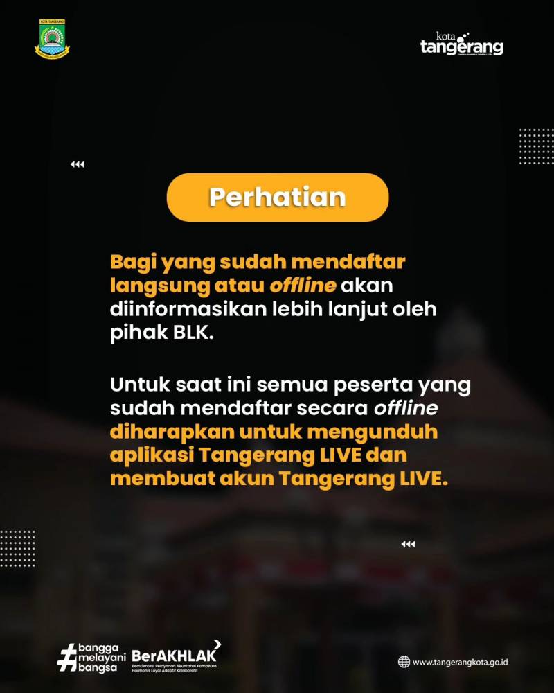 Warga bisa mendaftar melalui Aplikasi Tangerang Live kemudian pilih Layanan Ketenagakerjaan dan klik Tangerang Cakap Kerja.