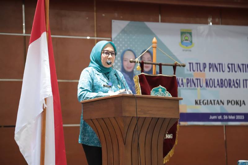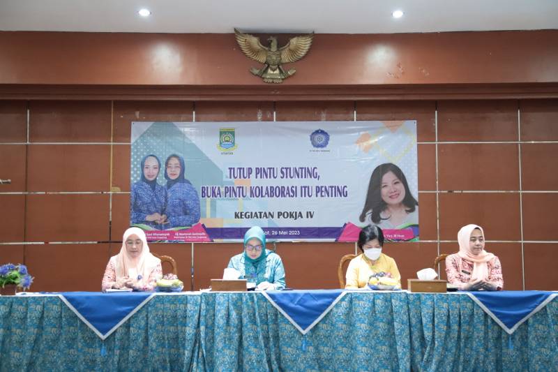 Pemerintah Kota (Pemkot) Tangerang melalui seluruh Organisasi Perangkat Daerah (OPD) tengah memperkuat intervensi penurunan stunting di Kota Tangerang, melalui berbagai sektor. Tak terkecuali jajaran Tim Penggerak Pemberdayaan Kesejahteraan Keluarga (TP PKK) Kota Tangerang melalui Pokja IV yang menggelar seminar bertajuk 'Tutup Pintu Stunting, Buka Pintu Kolaborasi Itu Penting', di Gedung Nyimas Melati, Jumat (26/5/23).