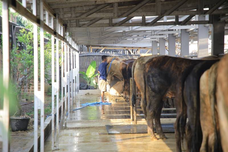 "Untuk sapi di sini yang dijual sapi limousine, sapi jawa, dan sapi simmental. Untuk kambing ada etawa dan senduro. Sapi yang saya datangkan dari Kediri dan Banyuwangi dan harga dihitung dari berat per-kilo dikalikan 70 ribu rupiah. Kandang juga selalu kami bersihkan selama dua kali dalam sehari," katanya.
