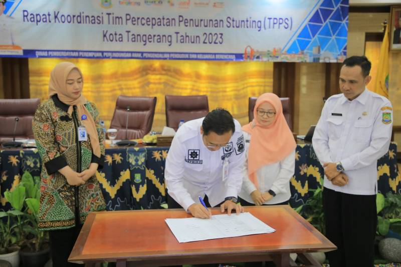 Pemerintah Kota (Pemkot) Tangerang melalui DP3AP2KB menggelar Rapat Koordinasi Tim Percepatan Penurunan Stunting (TPPS) guna membahas terkait strategi menekan angka stunting di Kota Tangerang, bertempat di Ruang Akhlakul Karimah, Pusat Pemerintahan, Rabu (21/6/2023)