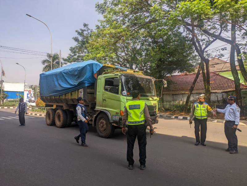 Menegakkan Peraturan Wali Kota nomor 93 tahun 2022, tentang pengaturan pembatasan jenis kendaraan, jam operasional, dan rambu-rambu lalu lintas kendaraan angkutan tanah dan pasir. Pemerintah Kota (Pemkot) Tangerang melalui Dinas Perhubungan (Dishub) didampingi jajaran Polres Metro Tangerang Kota, menggelar operasi gabungan truk tanah diluar jam operasional, di Jalan Sudirman, Flyover Cipondoh, Selasa (11/7/23).