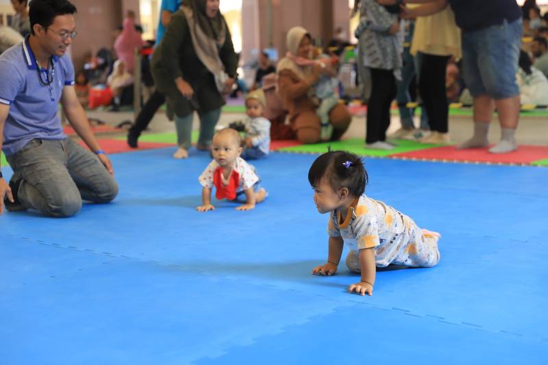 "Untuk Perlombaan Bayi Merangkak sendiri merupakan perlombaan yang baru dilakukan tahun ini, Alhamdulillah antusias masyarakat sangat baik. Hal itu tercatat dari banyaknya orang tua yang mendaftar bayinya dalam perlombaan ini," tambahnya.