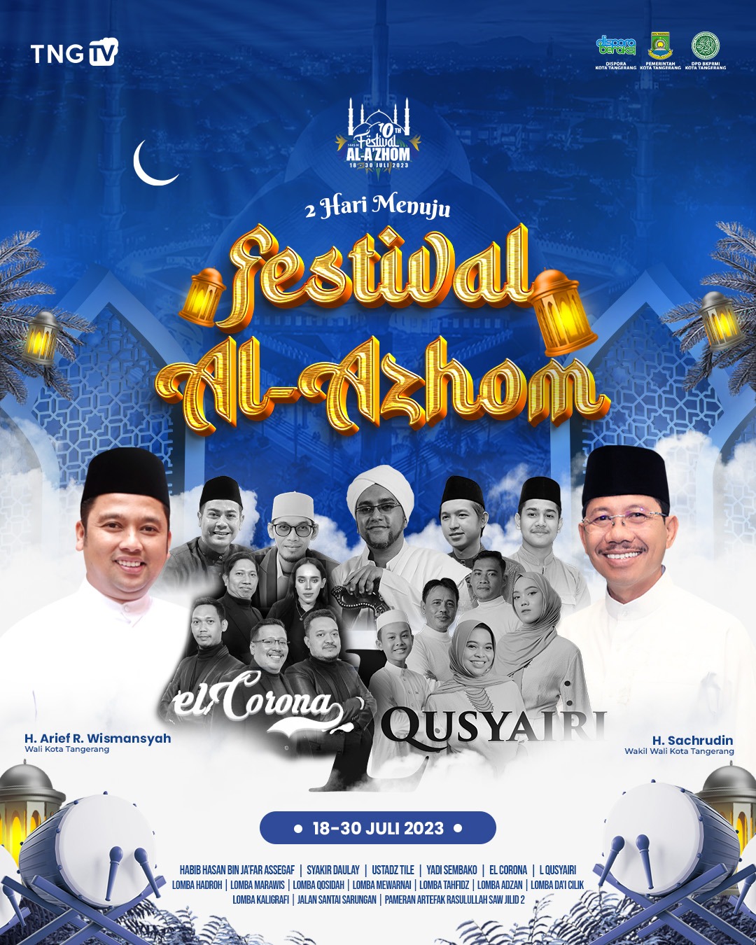 Pagelaran Festival Al-A'zhom akan kembali digelar. Kali ini dengan mengusung tema “Hijriah Penuh Hikmah” 1 Dekade Festival Al-A'zhom akan berlangsung 18 hingga 30 Juli 2023. Antusias masyarakat pun mulai terlihat, dari pendaftar perlombaan dan stand UMKM yang sudah penuh hingga beragam pertanyaan terkait pelaksanaannya.