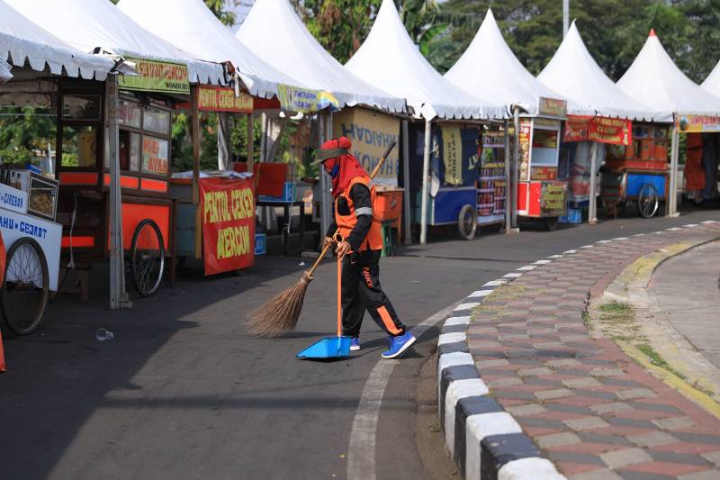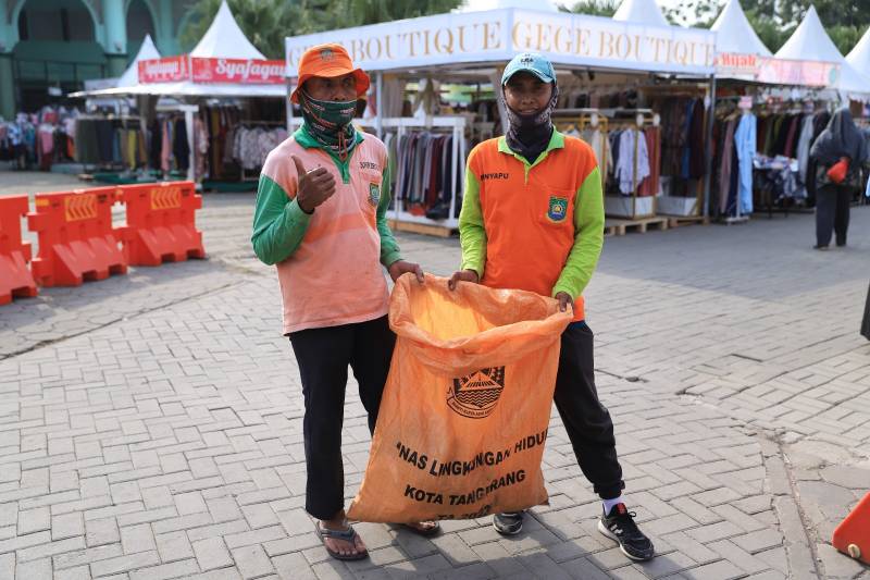 Dengan itu, para petugas kebersihan ditugaskan untuk sigap dan terus berkeliling ke seluruh titik festival, untuk membersihkan atau memastikan kebersihan disetiap sudut Masjid Al A'zhom atau sekitar Taman Elektrik, Puspem Kota Tangerang.