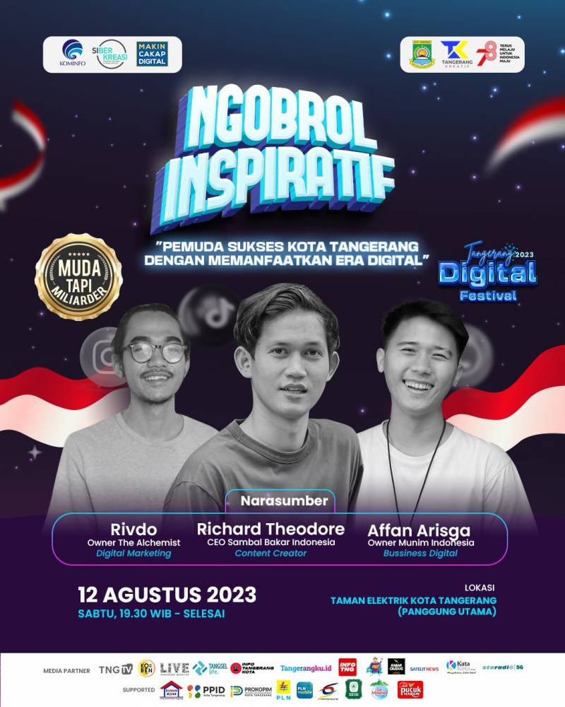 Pemerintah Kota (Pemkot) Tangerang melalui Dinas Komunikasi dan Informatika (Diskominfo) Kota Tangerang dalam waktu dekat akan menggelar Tangerang Digital Festival 2023. Salah satu rangkaian acara paling ditunggu pada momen Tangerang Digital Festival 2023 ini, yakni pameran yang akan digelar pada 12-13 Agustus 2023, di Taman Elektrik Pusat Pemerintahan (Puspem), Kota Tangerang.