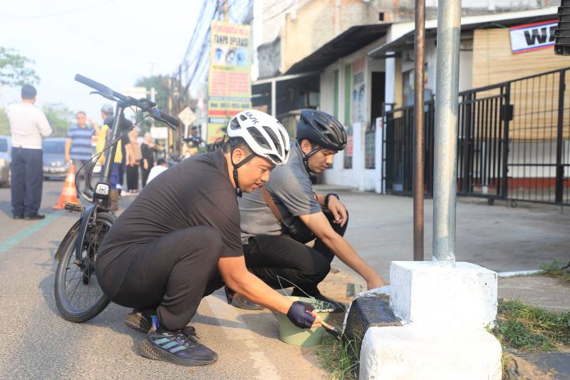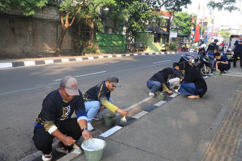 Dalam rangka menyambut kemerdekaan ke-78 RI, Pemerintah Kota (Pemkot) Tangerang menggerakkan seluruh pegawainya untuk melakukan pengecatan kanstin jalan dan juga membersihkan beberapa ruang publik dengan tajuk Jumat Bersih, Jumat (4/8/2023).