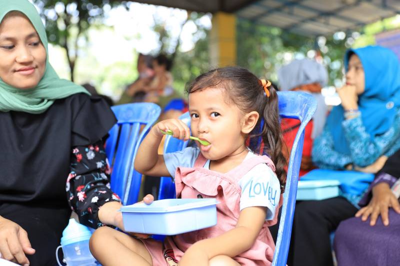 “Dalam program Pemberian Makanan Tambahan ini bukan sekadar menyuplai makanan sehat untuk anak-anak, dengan makan bersama. Dalam hal ini, orangtua juga diedukasi beragam pola makan yang bisa dicoba, beragam jenis masakan, hingga peka atau teliti pada pertumbuhan anaknya disetiap harinya,” ungkap Aini, usai membuka acara.