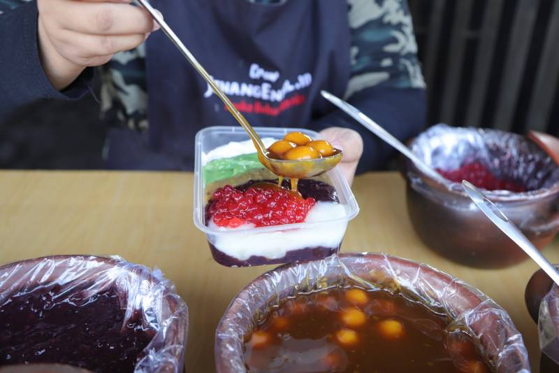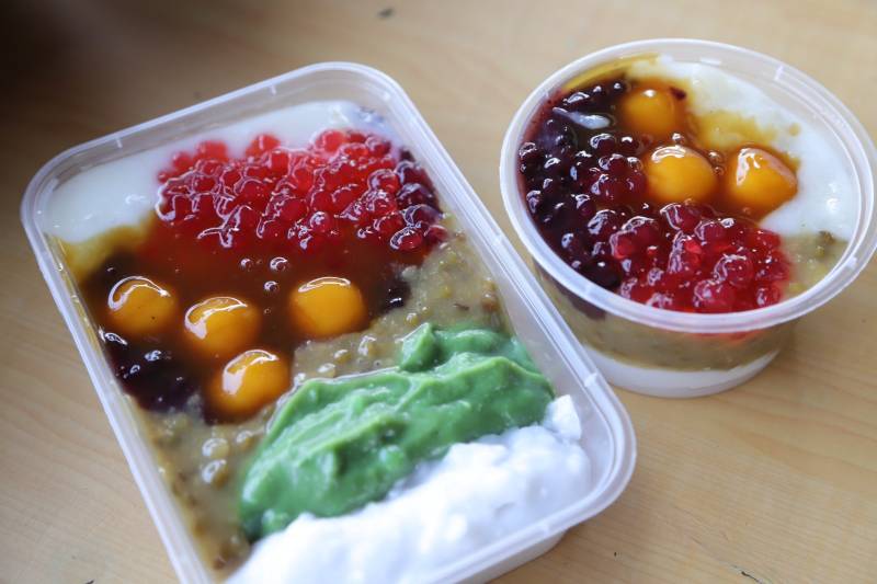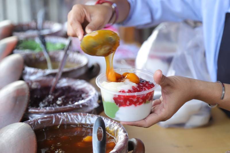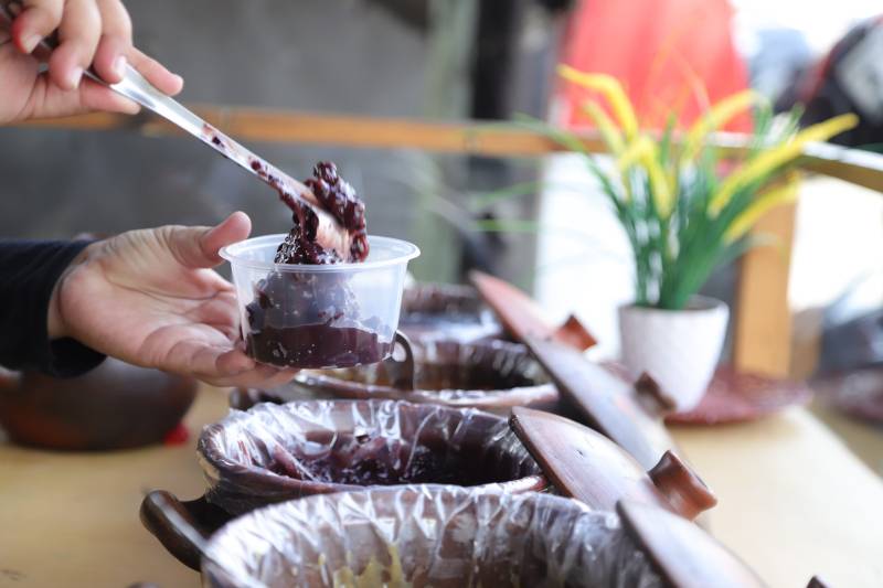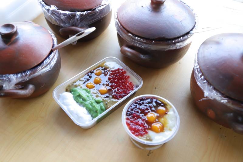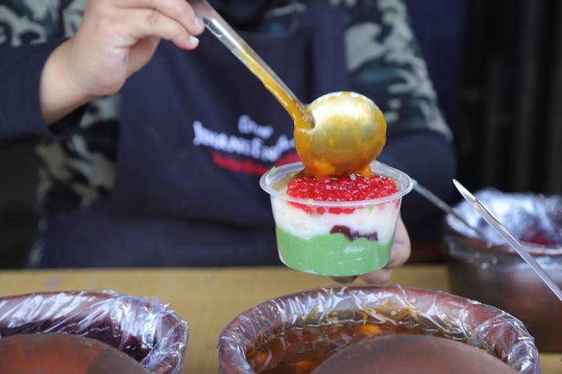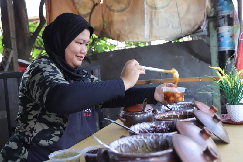 "Di sini ada berbagai varian seperti bubur sumsum, bubur sumsum pandan, candil, mutiara, bubur singkong, dan ketan hitam. Selain itu, ada menu tambahan yang tiap minggu selalu saya ganti. Untuk minggu ini, menunya adalah bubur kacang hijau, nanti mungkin diganti lagi dengan bubur labu kuning, candil ubi ungu dan sebagainya," ujarnya.