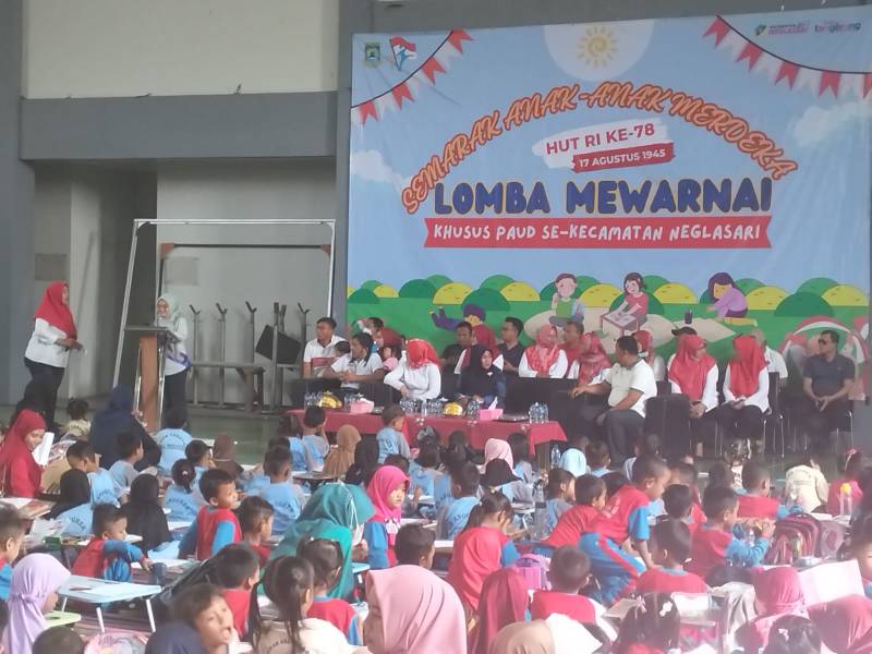 Dalam memeriahkan Kemerdekaan HUT ke-78 RI, seluruh wilayah di Kota Tangerang turut menggelar berbagai kegiatan menarik. Salah satunya Kecamatan Neglasari dengan mengadakan Lomba Mewarnai yang diikuti 1000 anak-anak PAUD se-Kecamatan Neglasari. Kegiatan ini juga berkolaborasi dengan Himpunan Pendidik dan Tenaga Kependidikan Anak Usia Dini Indonesia (HIMPAUDI) Kecamatan Neglasari, yang dilaksanakan di Gor Neglasari, Kelurahan Mekarsari, Minggu (13/8/2023).