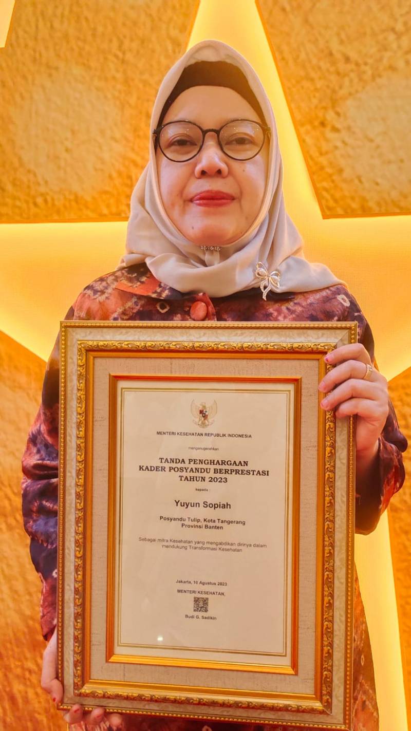 Pemerintah Kota (Pemkot) Tangerang melalui Dinas Kesehatan (Dinkes) Kota Tangerang kembali mencacatkan pencapaian yang gemilang. Terbaru, salah satu kader Posyandu terbaiknya, Yuyun Sopiah, berhasil meraih penghargaan sebagai Kader Posyandu Berprestasi Tahun 2023 dari Kementerian Kesehatan Republik Indonesia.
