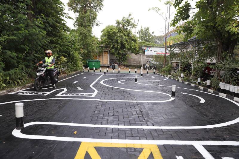 "Arena ini bagu pengendara roda dua dengan standar arena sirkut uji praktik. Dimana dulunya, dengan rute atau jalur angka delapan dan zig zag, namun yang ada di MPP Kota Tangerang ini sudah dengan rute leter S atai rute aturan terbaru," ungkap Zuldin, saat ditemui di MPP Kota Tangerang, Senin (21/8/23).