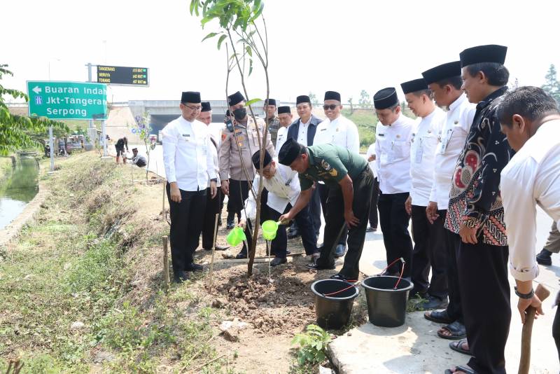 Menyikapi kondisi udara disejumlah wilayah yang tengah memburuk. Kecamatan Benda bersama tiga pilar berkolaborasi menggencarkan gerakan penghijauan untuk mengurangi polusi udara. Kali ini, melakukan penanaman puluhan pohon disejumlah ruas jalan atau lahan di Kecamatan Benda, Kamis (24/8/23).