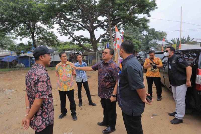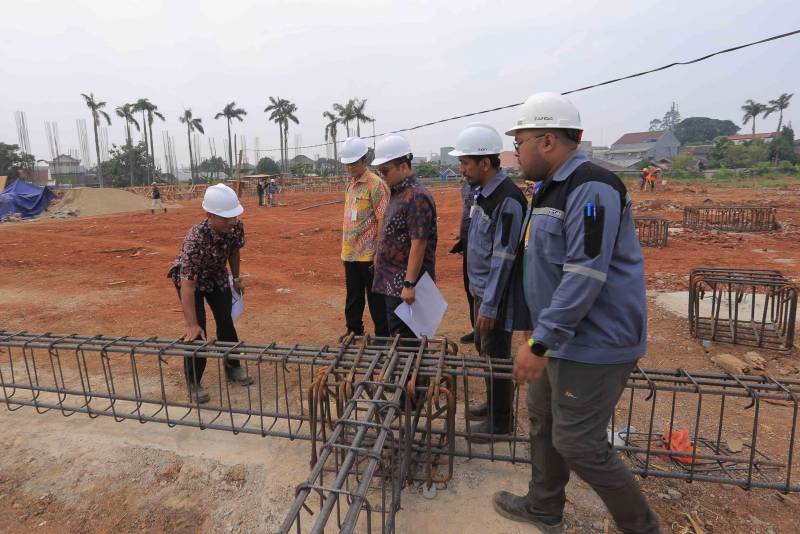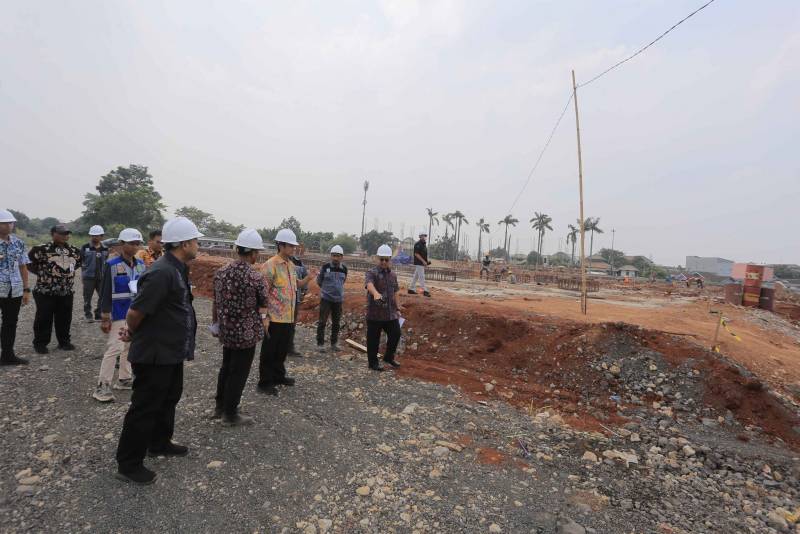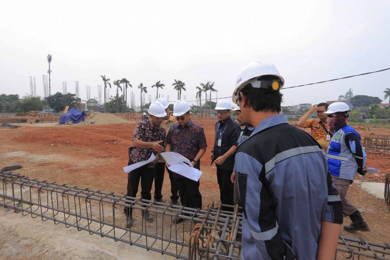 Wali Kota Tangerang, Arief R Wismansyah didampingi kepala Dinas Perumahan dan Permukiman Kota Tangerang, Sugiharto Achmad Bagdja, kembali meninjau proses pembangunan Sport Center Kota Tangerang yang berlokasi di Jalan Moh. Toha Kelurahan Nambo Jaya Kecamatan Karawaci, Kamis (31/8).