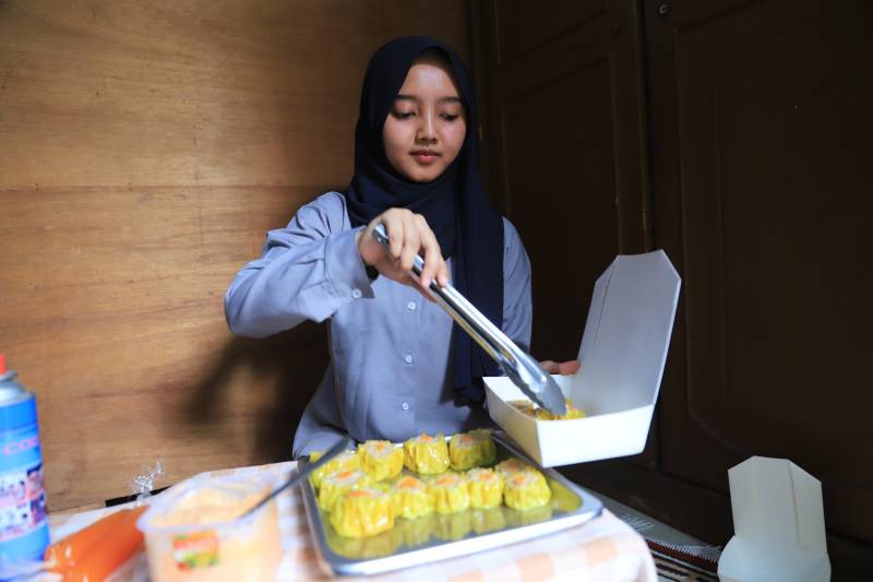 Sebagai ahli gizi yang suka jajan. Trianasari Alviani Putri (24) warga Kecamatan Batuceper, Kota Tangerang memulai bisnis dimsumnya sejak 2021 silam. Ya, hanya dengan modal Rp100 ribu dan bakat memasak yang Ia miliki sejak remaja, Triana merintis bisnis Masakin Dimsum melalui dapur rumahnya.