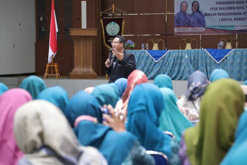 Tim Penggerak PKK Kota Tangerang terus berupaya membantu meningkatkan kesejahteraan para pelaku Usaha Peningkatan Pendapatan Keluarga (UP2K) UMKM. Salah satunya dengan mengadakan pelatihan Pemasaran Hasil Produk UP2K Dengan Menggunakan Aplikasi TikTok, yang dihadiri ratusan pelaku UMKM se Kota Tangerang, di Gedung Nyimas Melati, Senin (11/9/2023).