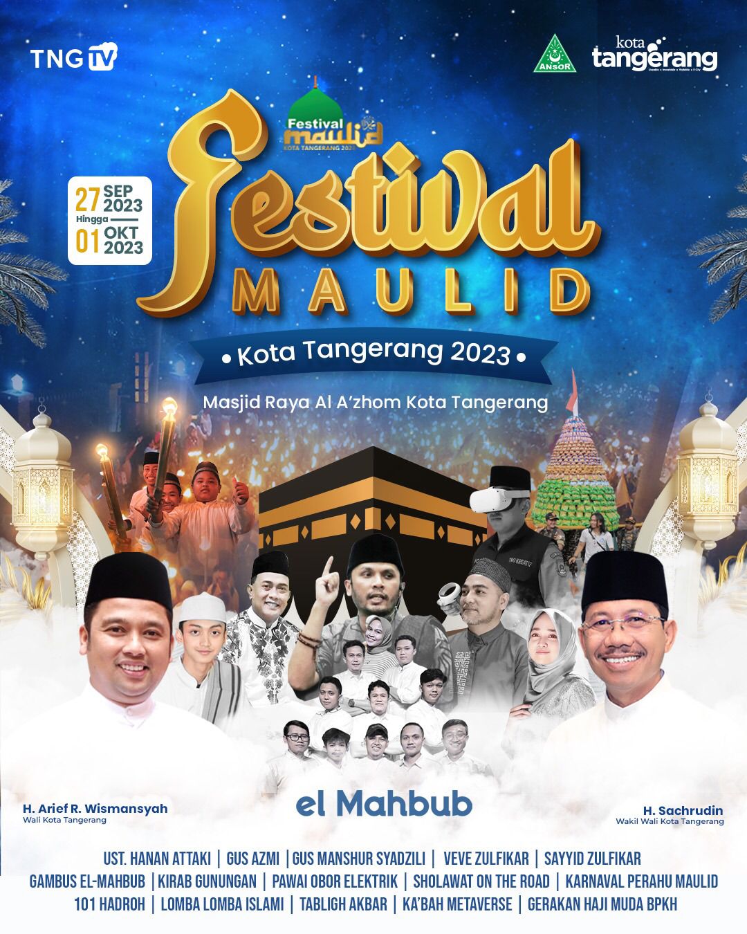 Dalam rangka menyambut Maulid Nabi Muhammad SAW yang jatuh pada 27 September 2023, Pemerintah Kota (Pemkot) Tangerang melalui Dinas Pemuda dan Olahraga (Dispora) akan segera kembali mengadakan Festival Maulid 2023. Berbagai pengisi acara juga akan memeriahkan Festival Maulid 2023 di antranya adalah Ust. Hanan Attaki, Gus Azmi, Gus Manshur Syadzihli, hingga Gambus el Mahbub.