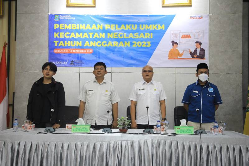 Guna meningkatkan kualitas bagi para pelaku UMKM di Kecamatan Neglasari, Kantor Kecamatan Neglasari menggelar pembinaan bagi para pelaku UMKM, di Aula Kantor Kecamatan Neglasari, Rabu (13/09/23). Pembinaan ini bertujuan agar para pelaku UMKM bisa mendapatkan inovasi-inovasi dan juga informasi terbaru yang dapat diterapkan pada produknya.