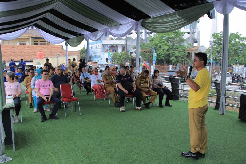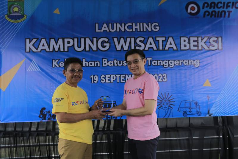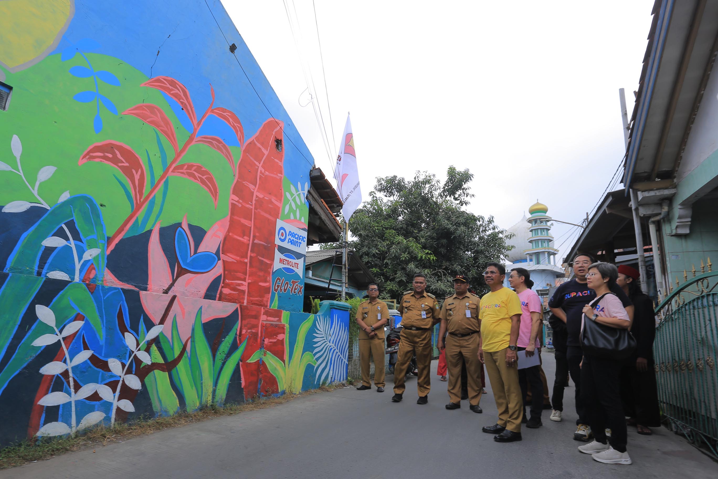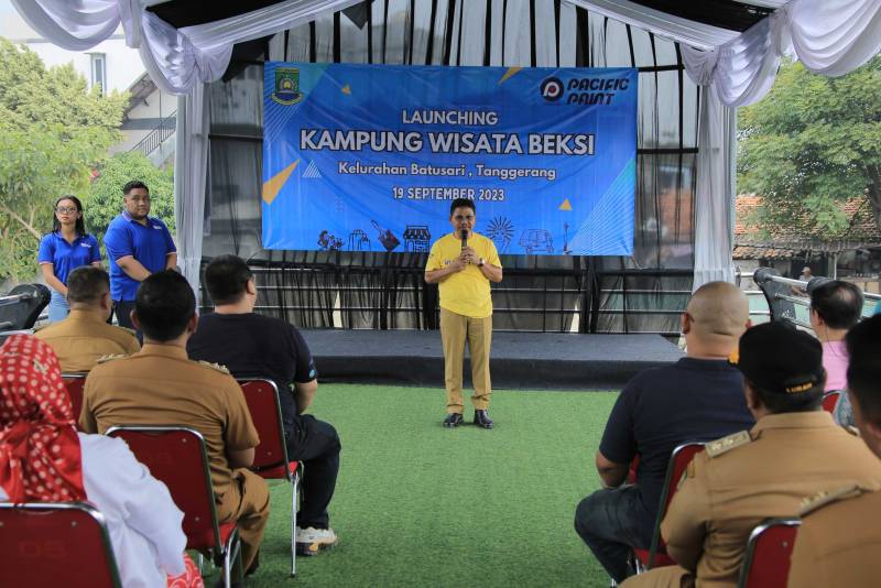 Wakil Wali Kota Tangerang, Sachrudin, meresmikan dan mengenalkan Kampung Beksi kepada peserta Pelatihan Rupa Citra, yang bekerja sama dengan PT Pacific Paint, di Kelurahan Batusari Kecamatan Batuceper, Kota Tangerang, Selasa (19/9).