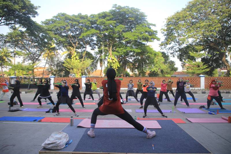 Pound fit menjadi trend olahraga masa kini yang diminati banyak kalangan, melihat itu Pemerintah Kota (Pemkot) Tangerang melalui Dinas Pemuda dan Olahraga (Dispora) mengadakan olahraga pound fit yang berkolaborasi dengan komunitas Cendana Pound yang ini diikuti puluhan pegawai wanita di lingkup Pemkot Tangerang dengan instruktur pound pro Thea, di Stadion Benteng Reborn, Jumat (21/9/2023).