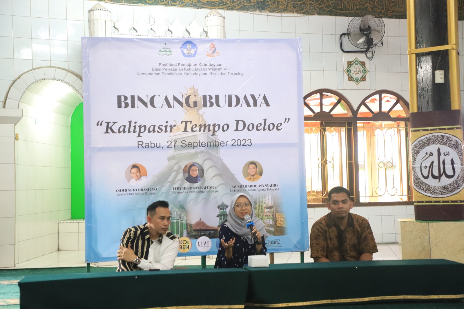 Kenalkan kembali sejarah kebudayaan di Kampung Kalipasir, DKM Masjid Jami Kalipasir menggelar seminar bincang budaya Kalipasir Tempo Doeloe, di Masjid Jami Kalipasir, Rabu (27/9/2023). Kegiatan yang juga di fasilitasi oleh Balai Pelestarian Kebudayaan (BPK) Wilayah VIII Banten dan Kementerian Pendidikan, Kebudayaan, Riset dan Teknologi Republik Indonesia ini juga menghadirkan pameran foto-foto arsip Kampung Kalipasir dan Tangerang sejak jaman VOC.