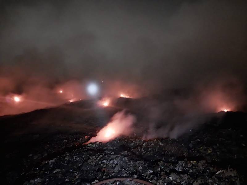 Sudah dua malam kebakaran besar melanda TPA Rawa Kucing, Kota Tangerang. Kondisi hari kedua, Sabtu (21/10/23) ini terpantau cukup berat, dikarenakan angin kencang tak henti berhembus sejak siang, dan membuat kepulan asap tebal terus menyelimuti lokasi kejadian. Sehingga, membuat banyak petugas pemadam bertumbangan dan warga sekitar terpaksa di evakuasi dan diungsikan.