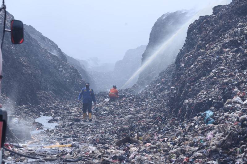 "Minggu pagi ini api memang sudah tak terlihat dipermukaan gunungan sampah TPA. Tapi, titik asap yang keluar masih cukup banyak, maka terindikasi potensi api masih ada didalam tumpukan sampah. Inilah yang gencar kita taklukkan, semoga cuaca hari ini bisa mendukung," ungkap Maryono.